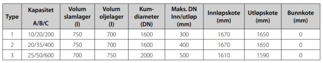 - Ved belastning fra A til B vil lamellutskilleren ha et oljeutslipp tilsvarende en klasse ll utskiller i henhold til NS-EN 858-1.