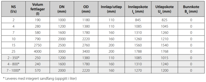 Det skal alltid anvendes et sandfang foran en oljeutskiller, størrelsen dimensjoneres i henhold til NS-EN 858-2.