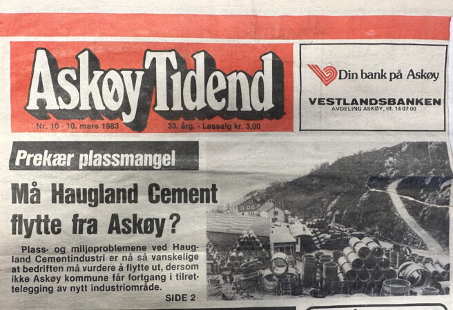 Produksjon av betongrør- og kummer gjorte at Haugland Cementindustri ekspanderte så mye frem til slutten av 1970-årene at virksomheten fikk store plassutfordringer på bedriftstomten. Dessuten gikk riksveien og skoleveien tvers gjennom bedriftens omstillingsplass der lastingen av trailere foregikk.
