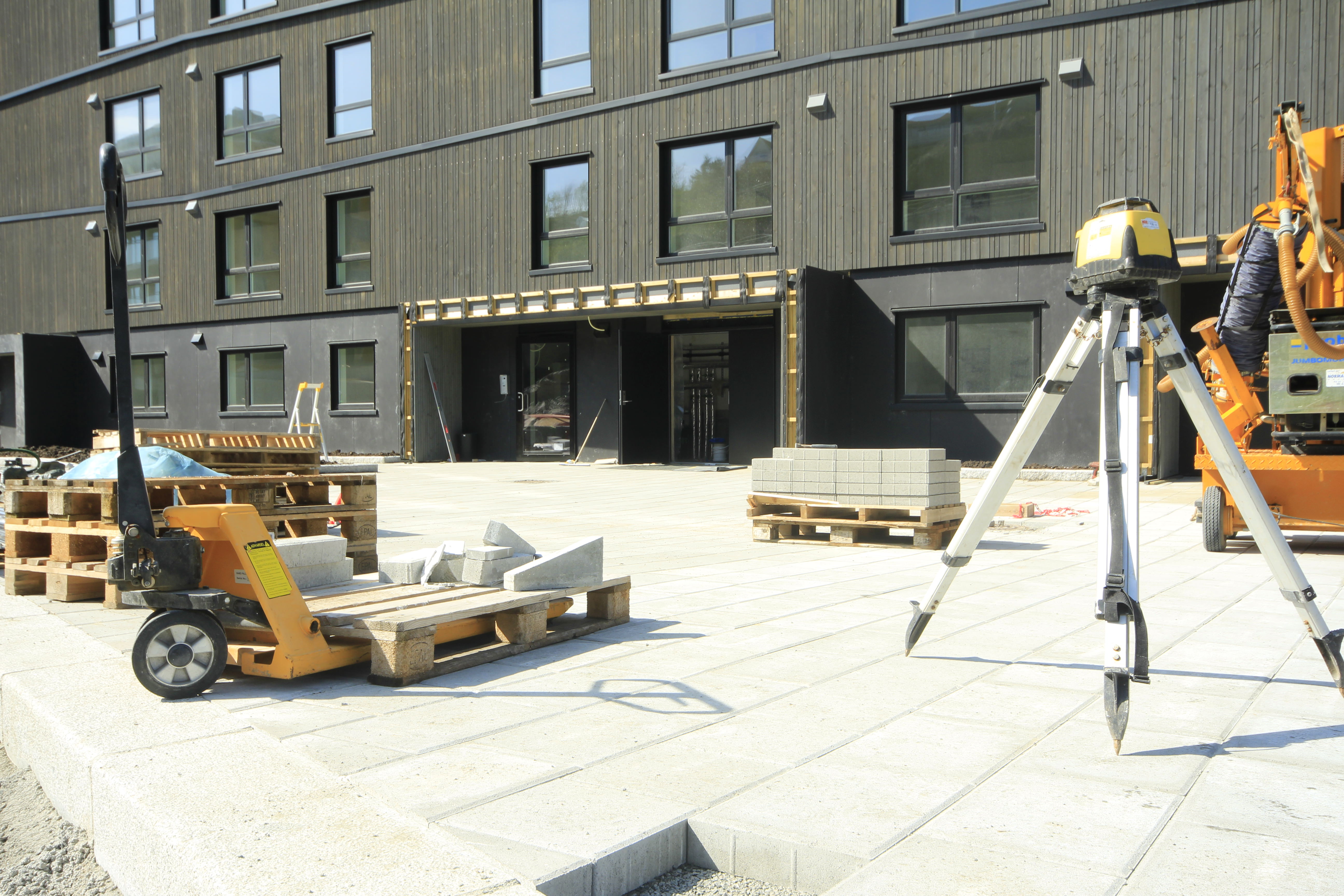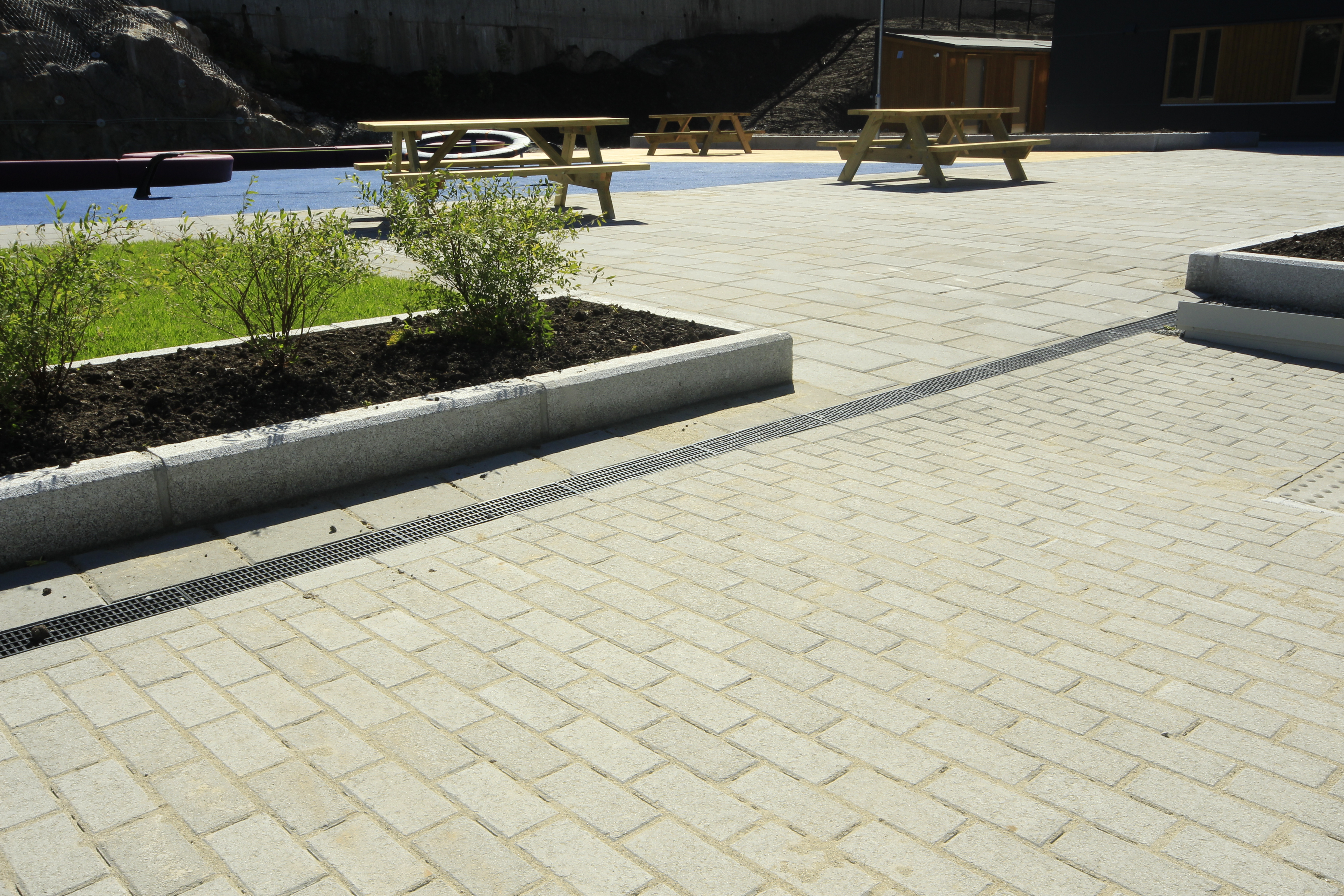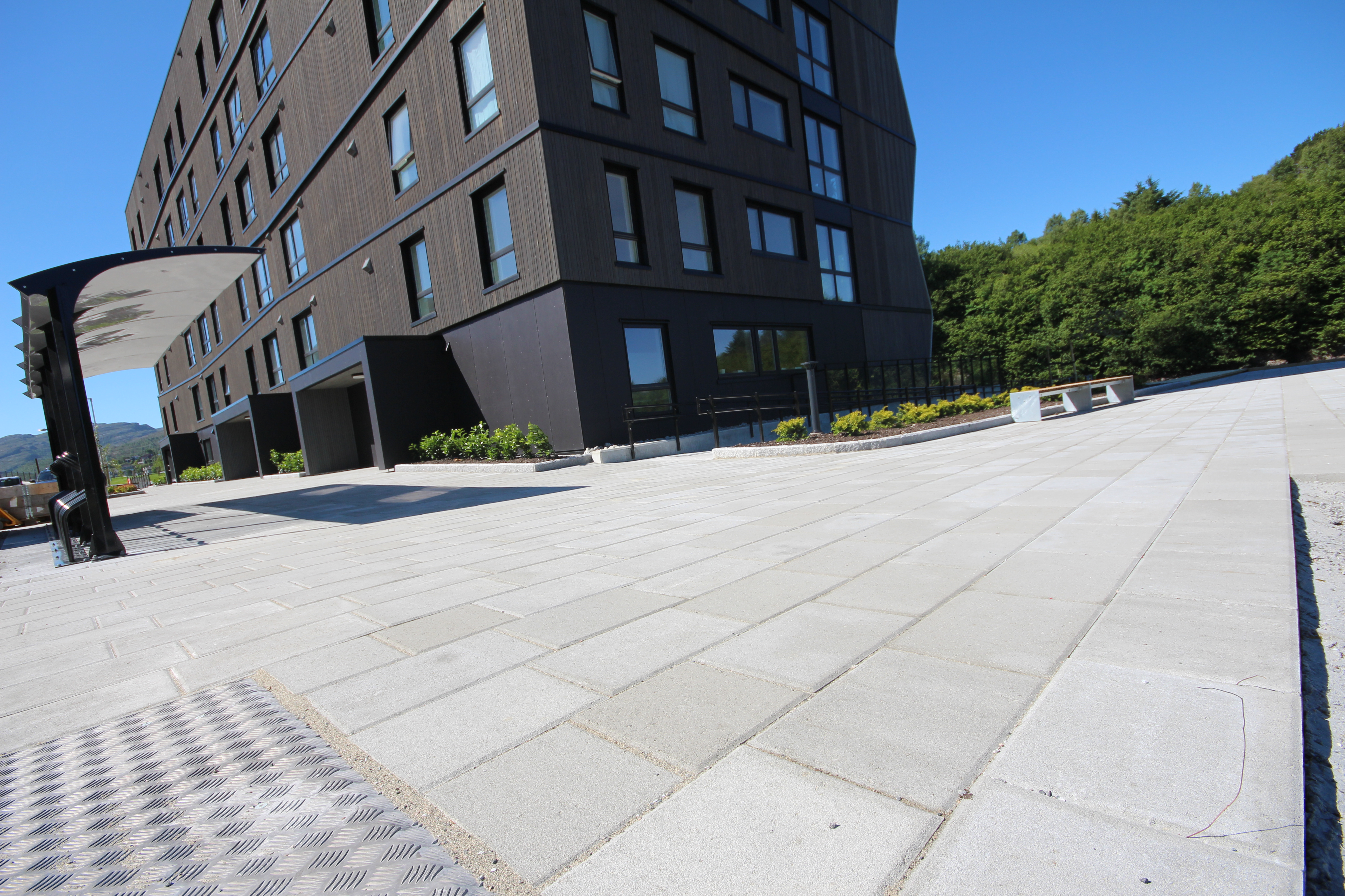 Gangarealene er dekket med gangbaneheller fra NOBI, produsert på Askøy.